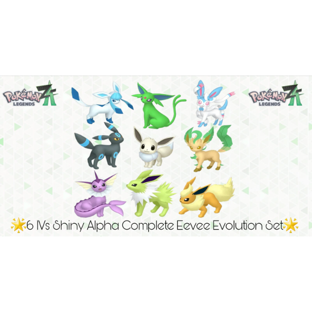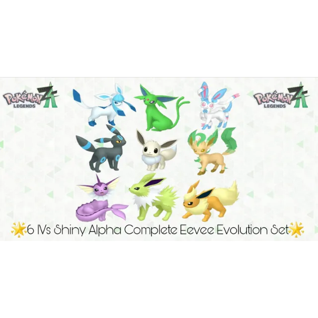 🌟6 IVs Shiny Alpha Complete Eevee Evolution Set | Pokémon Legends: Z-A🌟