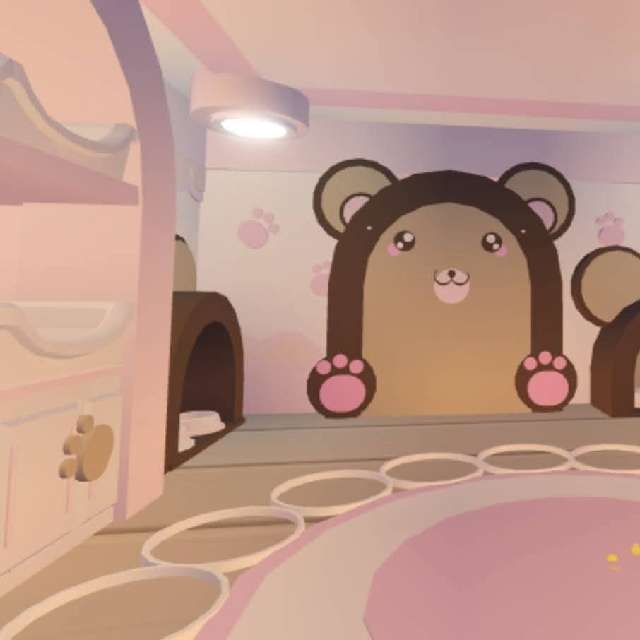 Fully decorated with warm pastel tones, bear wallarts, and all grind essentials for your pet. Sweet, simple, and cute! 💖🧸