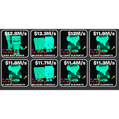 Some of the best brainrots in the game! Includes cardbox sahur, milkers and elefanto.