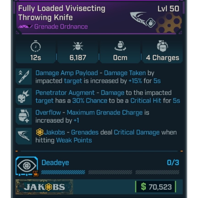Overflow - Maximum Grenade Charge is increased by +1