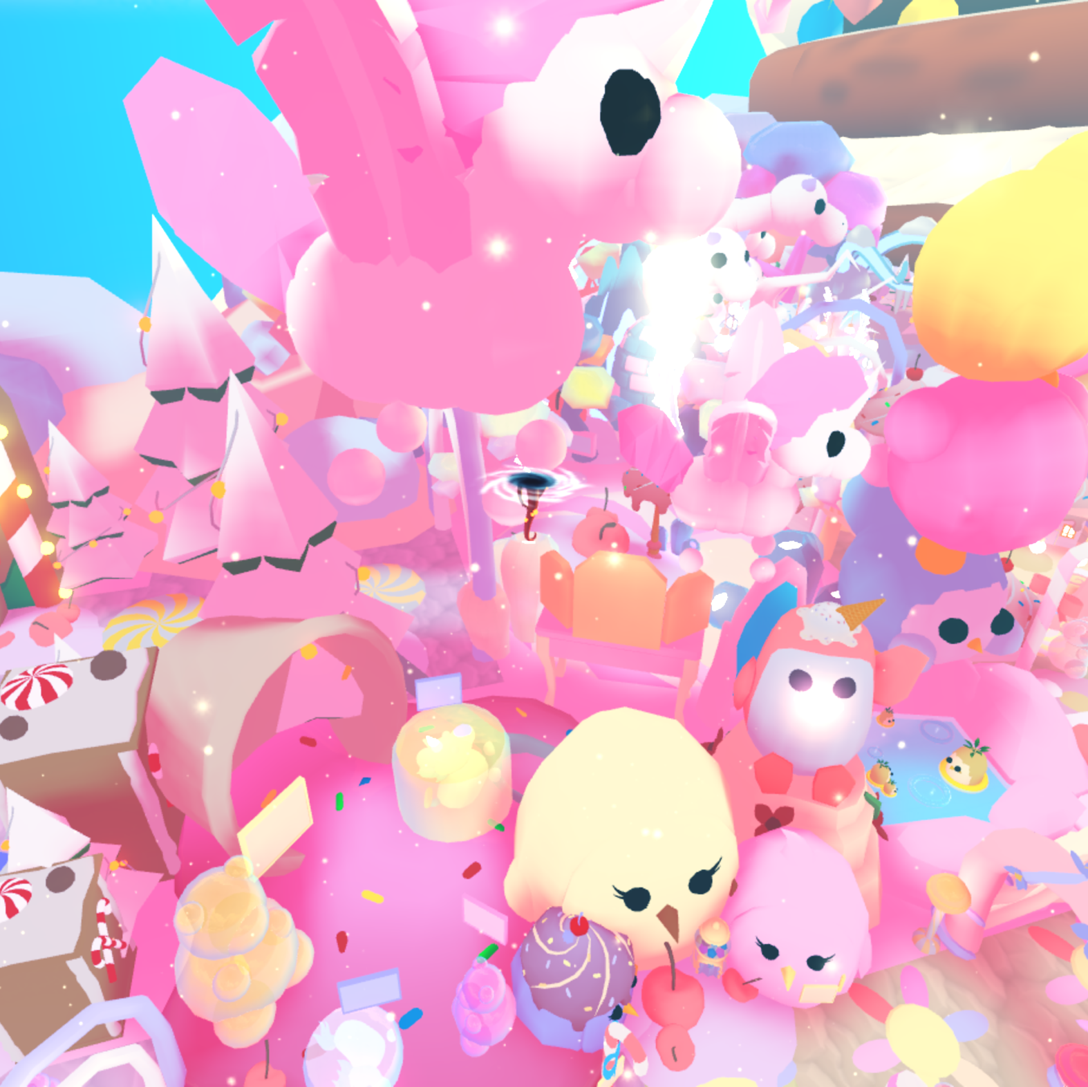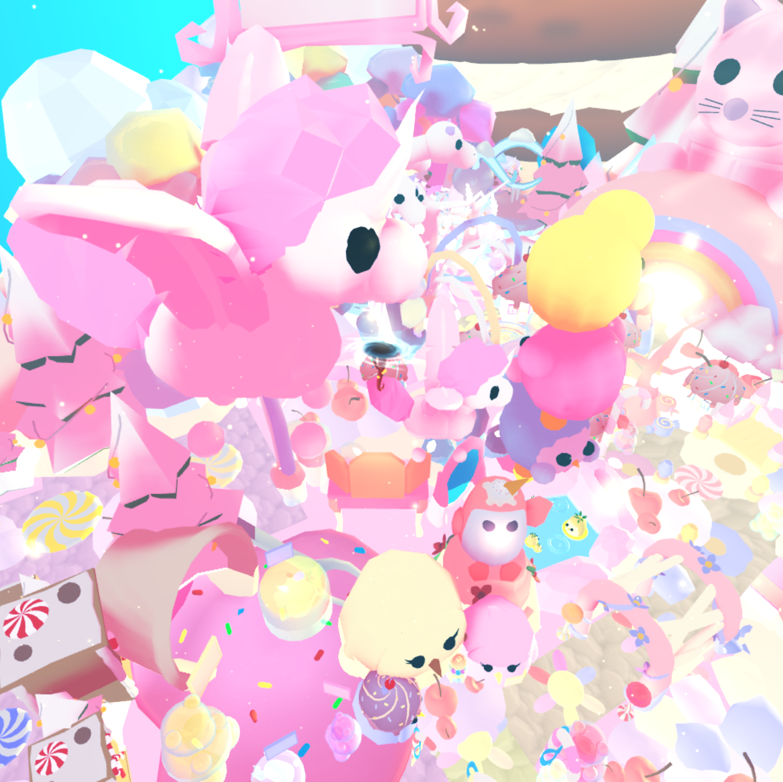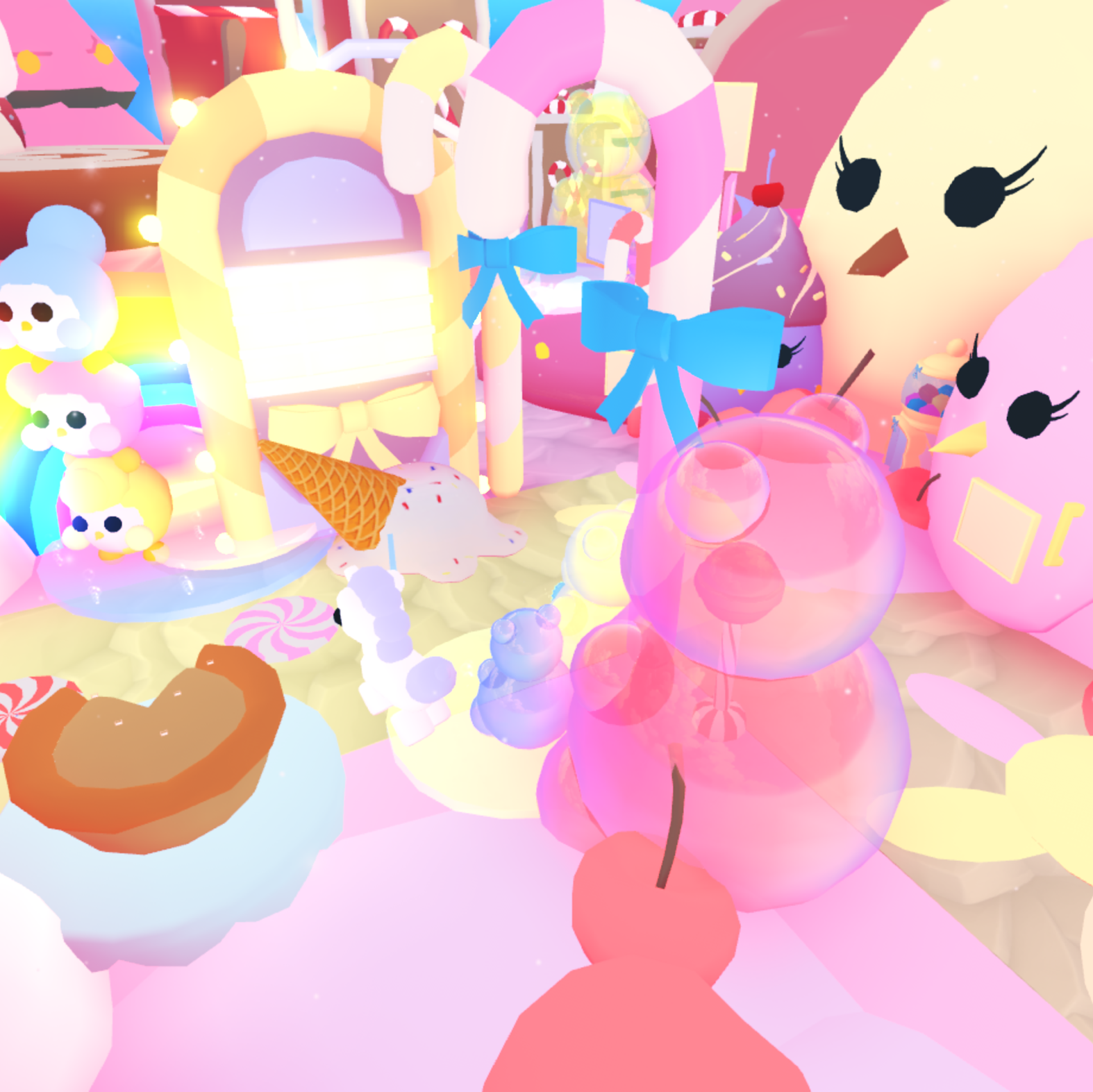 🍬 Adorable decor everywhere – sweets, plushies, rainbows, clouds