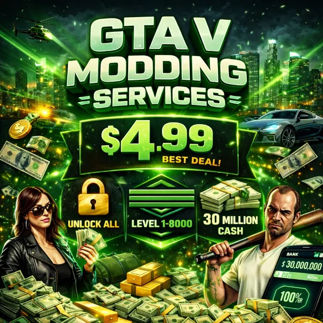 I log into your existing GTA V Enhanced account and apply the service within 15 minutes. This includes adding $30M safely, unlocking everything in the game, and setting any level you choose (1–8000).