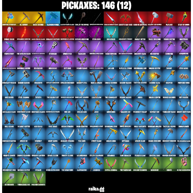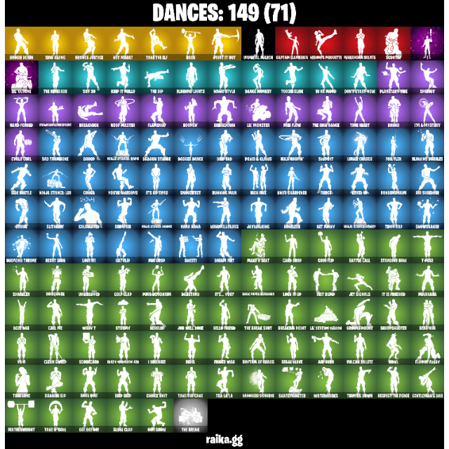 • Outfits: 156 | Back Blings: 199 | Pickaxes: 146 | Dances/Emotes: 149
