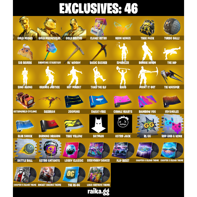 [PC/PSN/XBOX] — 156 Skins | Gold Midas, Gold Meowscles, Gold Brutus | 46 EX | 500 VB | FA