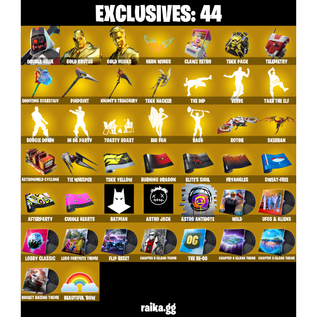 • Exclusives: 44 | V-Bucks: 2200