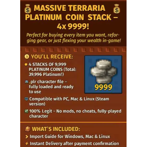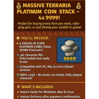 🔥 Terraria 4x 9999 Platinum Coins 💸 | PC / Linux / Mac / Android/ IPhone | Fast Delivery!