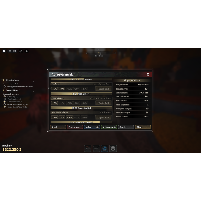 • lvl 1-100 = $11.10 All in one service with Pickaxe(DEMON), GOLD(1M+ overall) more or less with in 500k gold will left because im going to buy the (DEMON) pickaxe, (ARMOR SET) Mid game this process will be 24 hours or more because this grind is too hard to process if your account is lvl 1