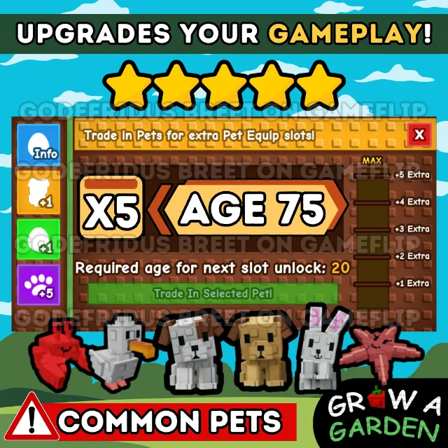 Selling high-age pets (Age 60 or 75) ready to trade in for extra Pet Equip slots!