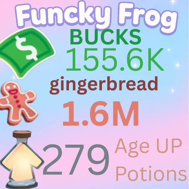1.6M ginger bread 155.6k bucks 279 age up