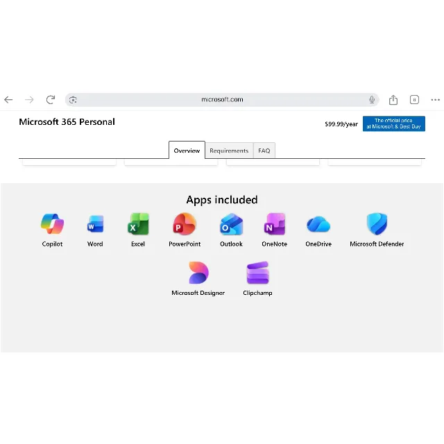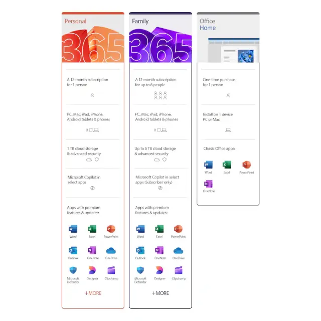 > Full premium apps: Word, Excel, PowerPoint, Outlook, OneNote