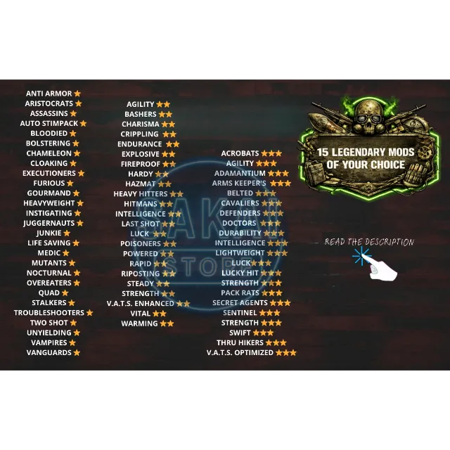 ⚠️YOU CAN CHOOSE 15 SAME OR DIFFERENT LEGENDARY MODS ACCORDING TO THE MOD LIST IN THE PIC⚠️