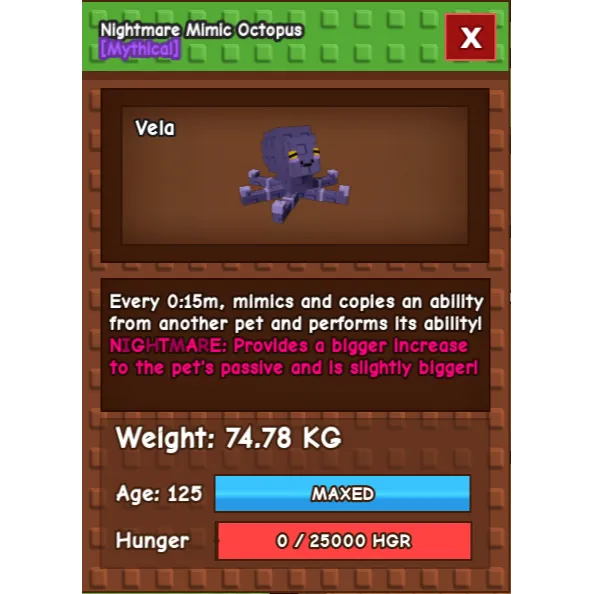 15 sec Mimic / huge mimic / 74kg mimic / 75kg mimic / hyperhunger / nightmare / titanic mimic