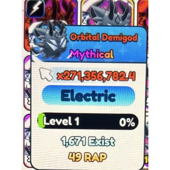 this is one of the new rainbow electric orbital demigod pets in tap simulator. it is the new best non secret pet in the game.