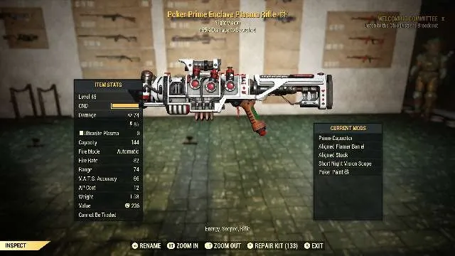 Type: Weapon. Two max rank beautiful modded enclave plasma rifle. Prime capacitor aligned flamer barrel aligned stock and short night vision scope, or reflex sight. Please specify scope choices, doesn't come painted.