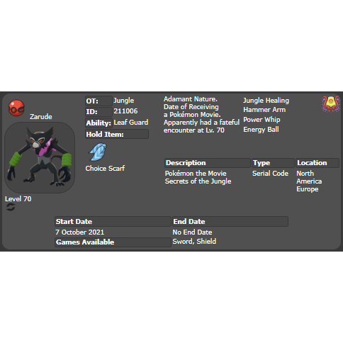 2021 Dada Zarude Event| Pokémon Sword & Shield | Untouched