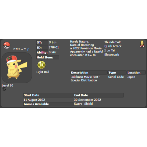2022 Japanese Ash Hat Pikachu Movie Event | Pokémon Sword & Shield | Untouched