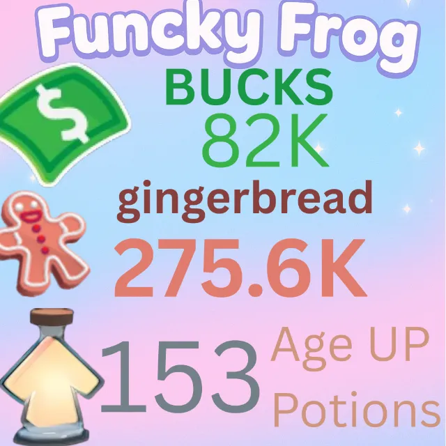 275.6 k ,GINGERBREAD , 82 k bucks, 153 ageup portions. ADOPT ME , AGEUP AND BUCKS