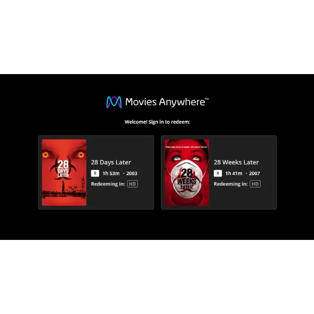 One code for both 28 Days Later / 28 Weeks Later movies. No refund/returns.