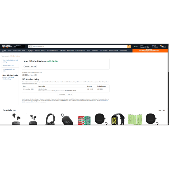 amazon.ae 50 AED balance