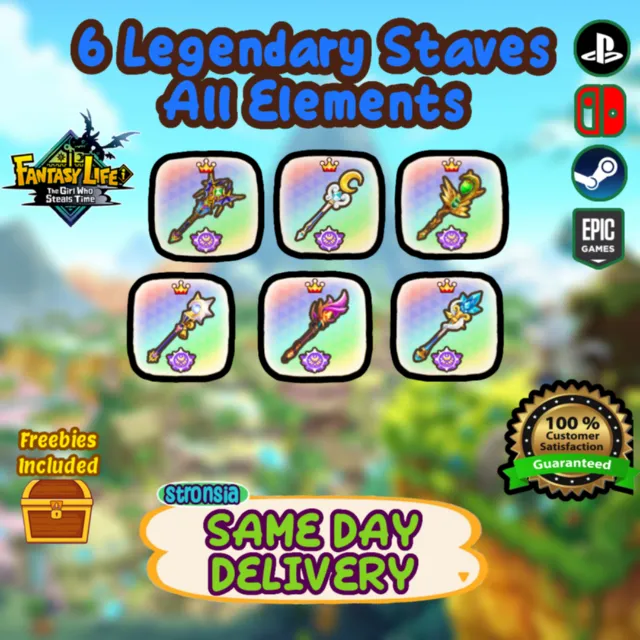 6 Legendary Staves (ALL 6 Elements) || 🟢SAME DAY DELIVERY🟢 || Fantasy Life i: The Girl Who Steals Time