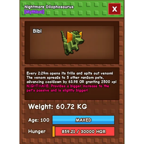 1x 60.72 Dilophosaurus with Nightmare mutation