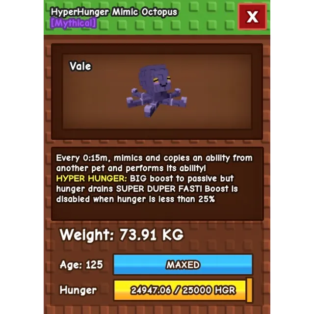 74kg mimic octopus 15 second hyper hunger