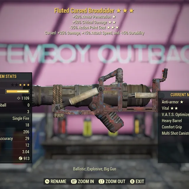 Anti Armor 50 More Vats Crit Damage 35 Less Vats Ap Cost Cursed Broadsider