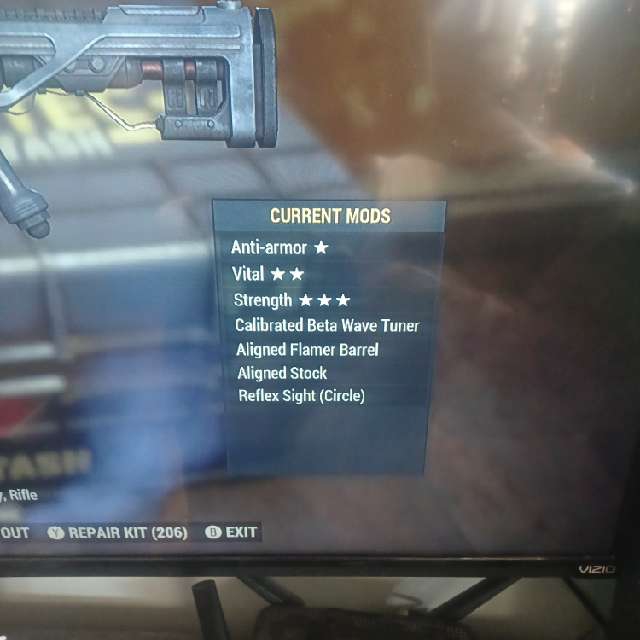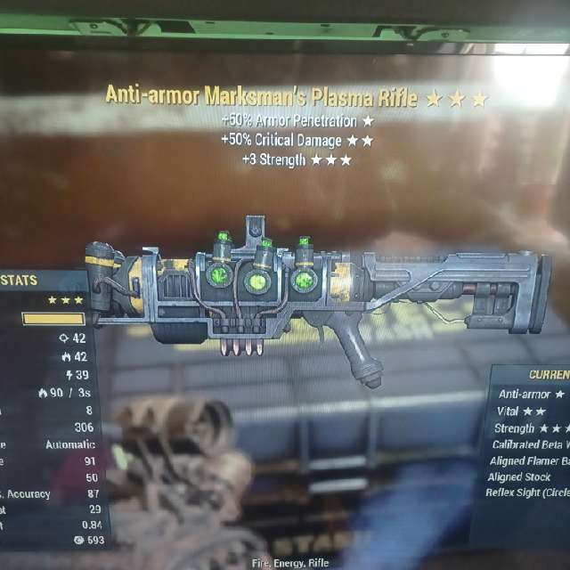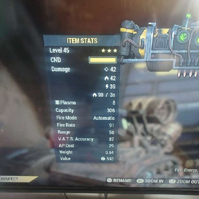 Max level Plasma rifle fully modded with the flamer barrel!