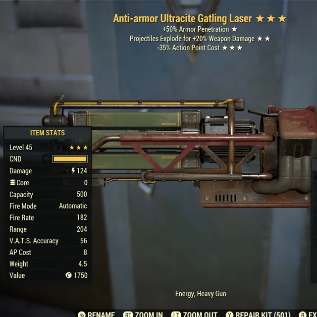 Anti Armor Explosive 25 less vats cost Ultracite Gatling Laser