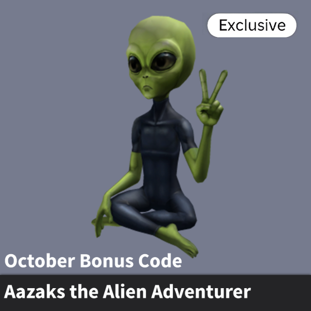You're gonna get the exclusive code item "Aazaks the Alien Adventurer".