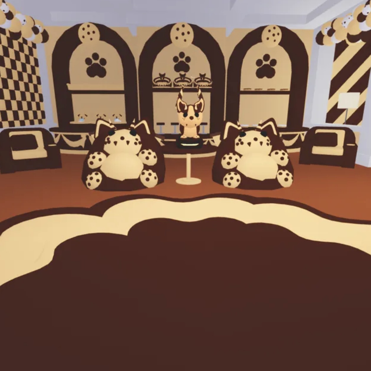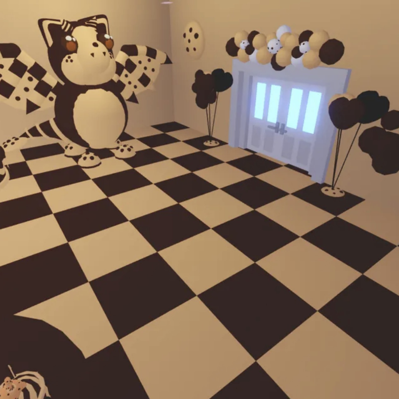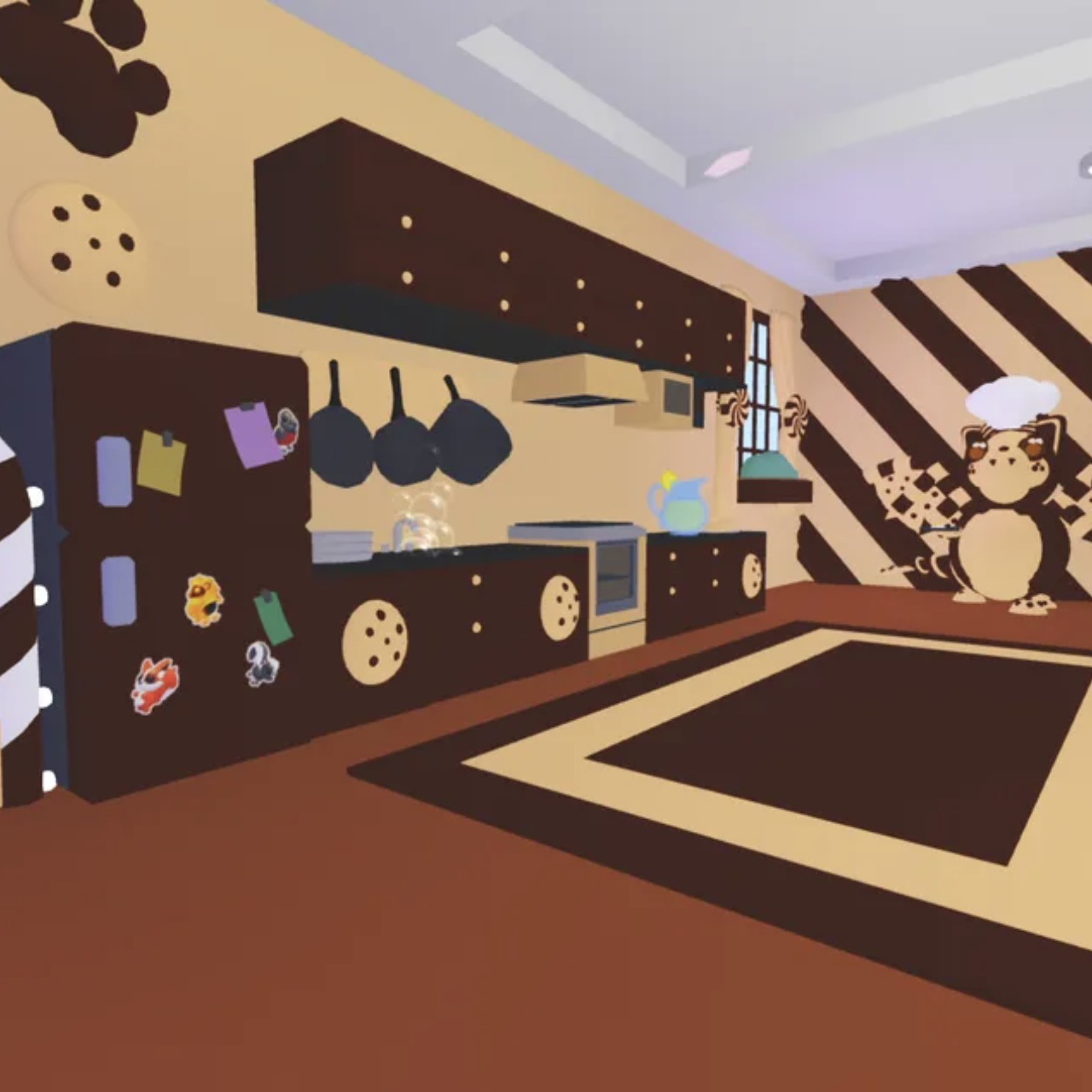 Step into the sweetest home on the block! This chocolate chip bat dragon–themed family house is cozy, creative, and fully equipped for all your Adopt Me needs. With warm cookie-inspired designs and adorable bat dragon touches throughout, it’s the perfect mix of cute + functional.