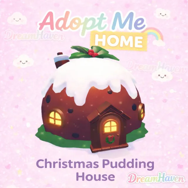 Christmas Pudding House in Adopt Me! This is the default home and comes with all original, unchanged decor exactly as it appears when 1st given in-game.
