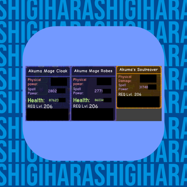 - 1x Blue Akuma Mage Cloak (28.02m | 876.23m HP)