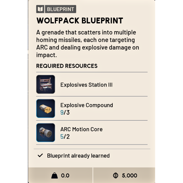 ARC RAIDERS WOLFPACK BLUEPRINT