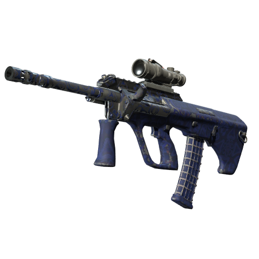 Powerful and accurate, the AUG scoped assault rifle compensates for its long reload times with low spread and a high rate of fire. A blue hydrographic of Murano beads has been applied.