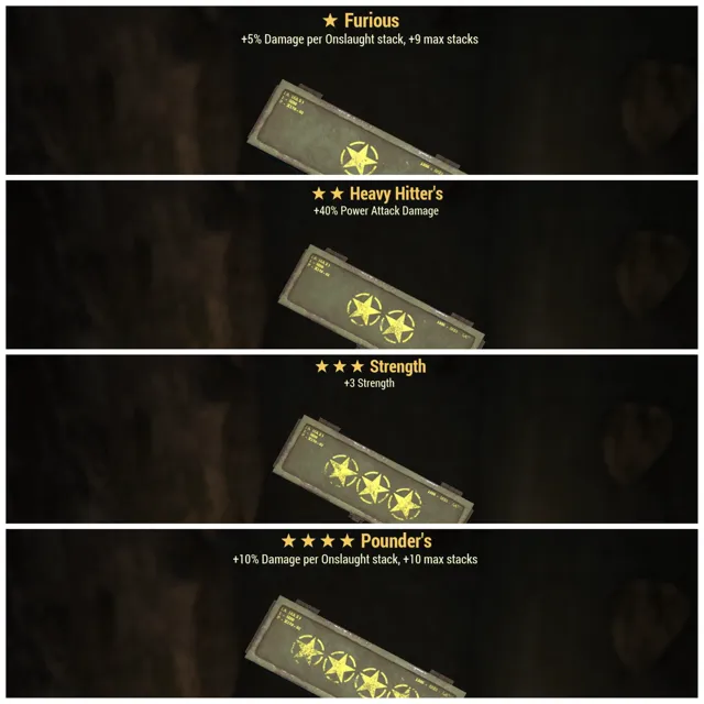 Type: Other - Every Mod Box Needed For The Auto-Axe - Furious, Heavy Hitters, 3*⭐️⭐️⭐️ Strength, Pounders, 4 Mod Boxes Total 😄