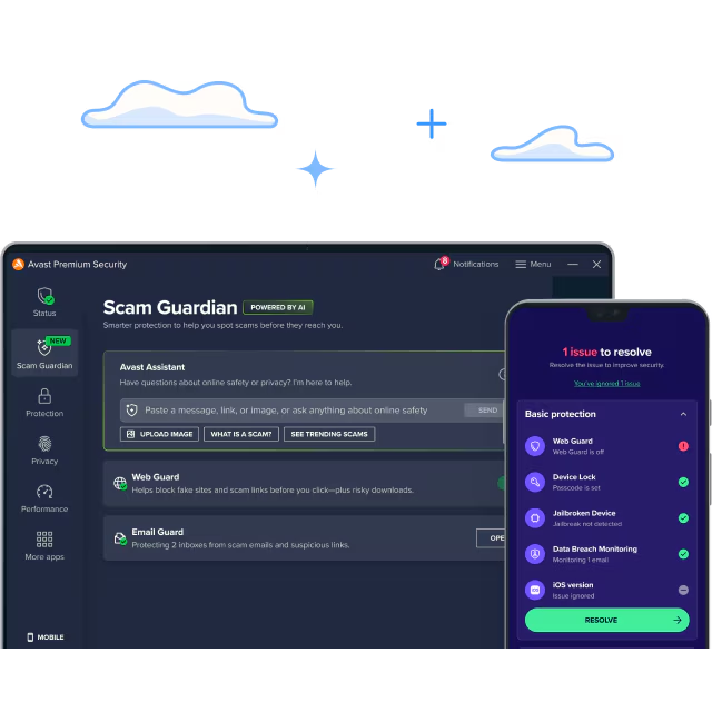 Use AI-powered Avast Assistant to help detect online scams.