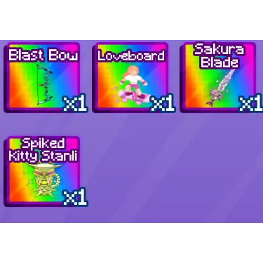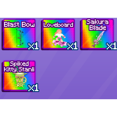 Comes with loveboard, Spiked stanli, Blast bow, Sakura blade and kickboxing style FIVE ITEMS TOGETHER!!!!!!!!!
