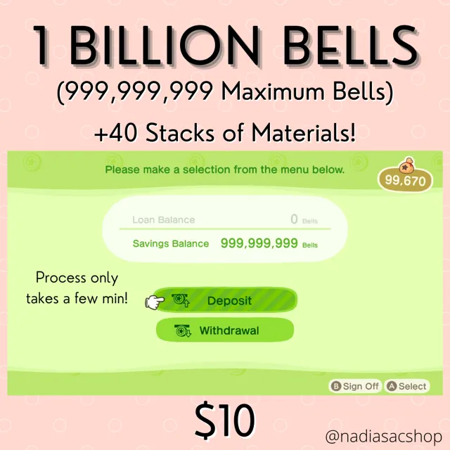 Become a billionaire with 1 billion max bells + bring back 40 stacks of materials!