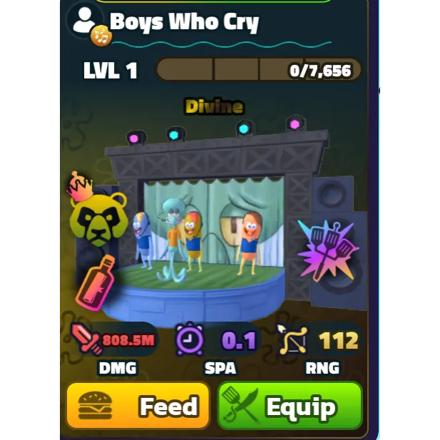Boys who Cry troop in spongebob tower defense with spatula and 2 traits already on it.
