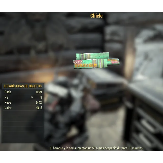 +8 HP, +1 Rads, 50% slower hunger and thirst (for 10 minutes)