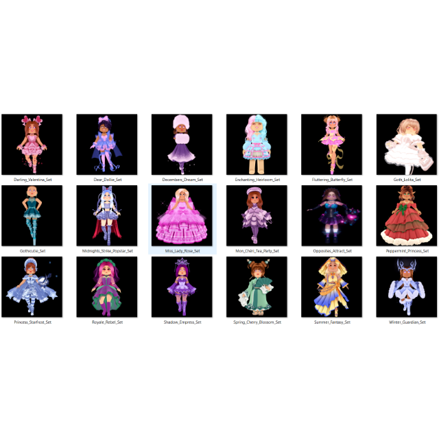 This listing includes all the permanent & seasonal sets in royale high or all the sets shown in the picture.