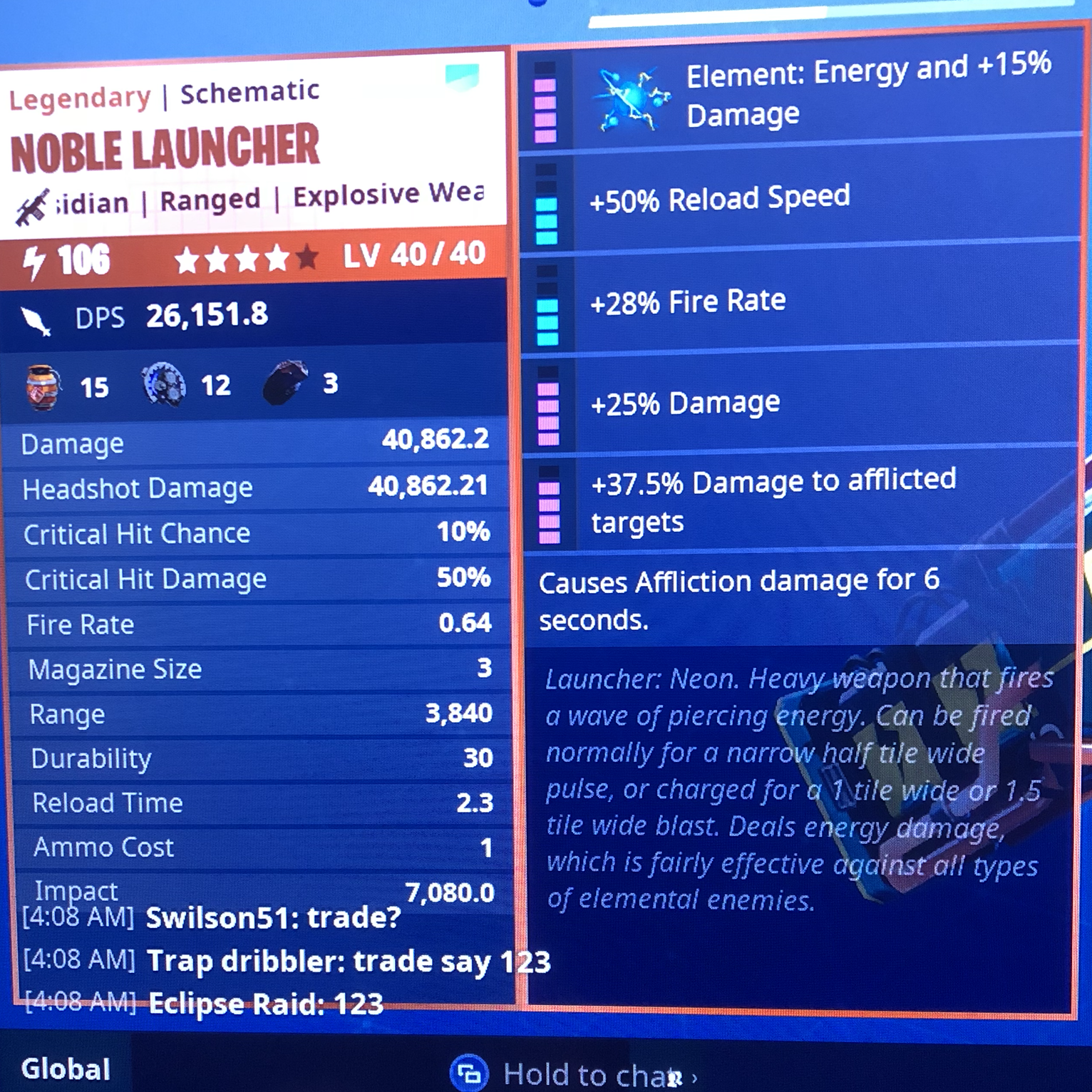 (X2) Lvl: 40/40 LP: 106 Noble Launcher