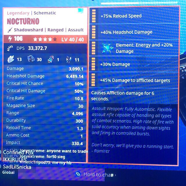 (Affliction Damage, Fast Fire Rate, Fast Reload, High Headshot Damage)