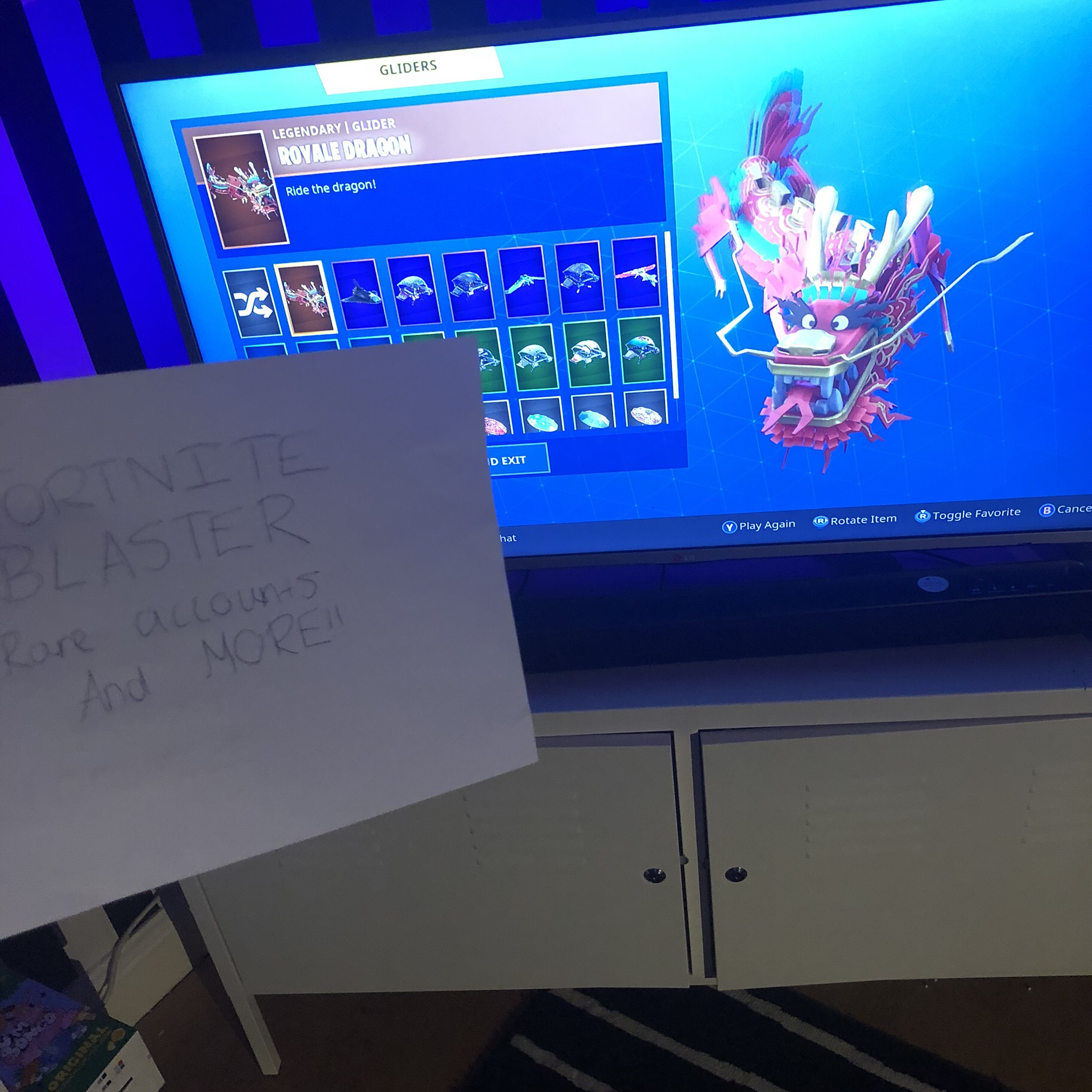 **DO NOT BUY IF YOUR ARE NOT GOING TO RATE FIRST**Account includes skull trooper and renegade raider , if also had the reaper scythe with some other purple pickaxes, the account has some rare gliders , it has the royale dragon glider and some other cool purple gliders . The account also includes save the world I have some of the Halloween heroes but don’t play it much so it’s only in plankerton. But I have most of the purple emotes . If you need any more proof just comment any of your social media’s and I will contact you on there I can send photos to prove the account is real. Thank you