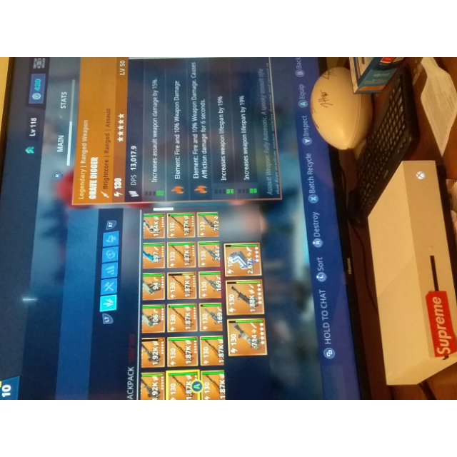 Stw- Full durability ,40+ godrolled 130's ,31 legacy weapons,5 modded for free + the rest of my inventory