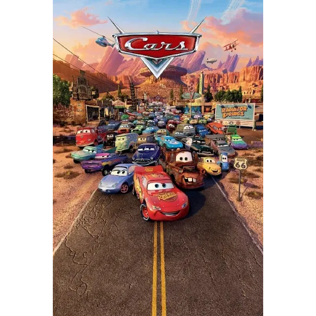 Lightning McQueen, a hotshot rookie race car driven to succeed, discovers that life is about the journey, not the finish line, when he finds himself unexpectedly detoured in the sleepy Route 66 town of Radiator Springs. On route across the country to the big Piston Cup Championship in California to compete against two seasoned pros, McQueen gets to know the town's offbeat characters.