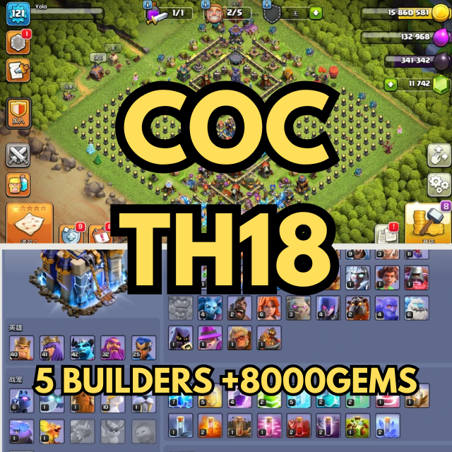 [WARNING: Stay safe! Deals made outside Gameflip aren’t protected. Always trade and chat within Gameflip.] [WARNING: Stay safe! Deals made outside Gameflip aren’t protected. Always trade and chat within Gameflip.] [WARNING: Stay safe! Deals made outside Gameflip aren’t protected. Always trade and chat within Gameflip.] Clash of Clans account TH18 +8000 Gems for sale 5 builders