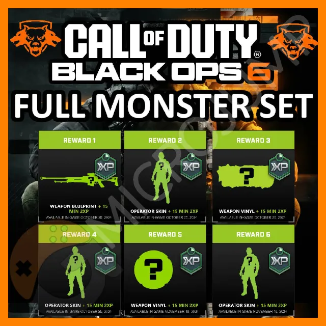 Bundle contains all 6 of 6 BO6 Monster items: