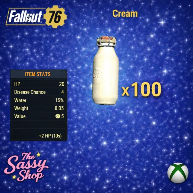 100 Cream. Cream restores 20 HP and 15% water meter but carries a high disease risk and may cause parasites. (Effects: +20 HP. ) Type: Aid